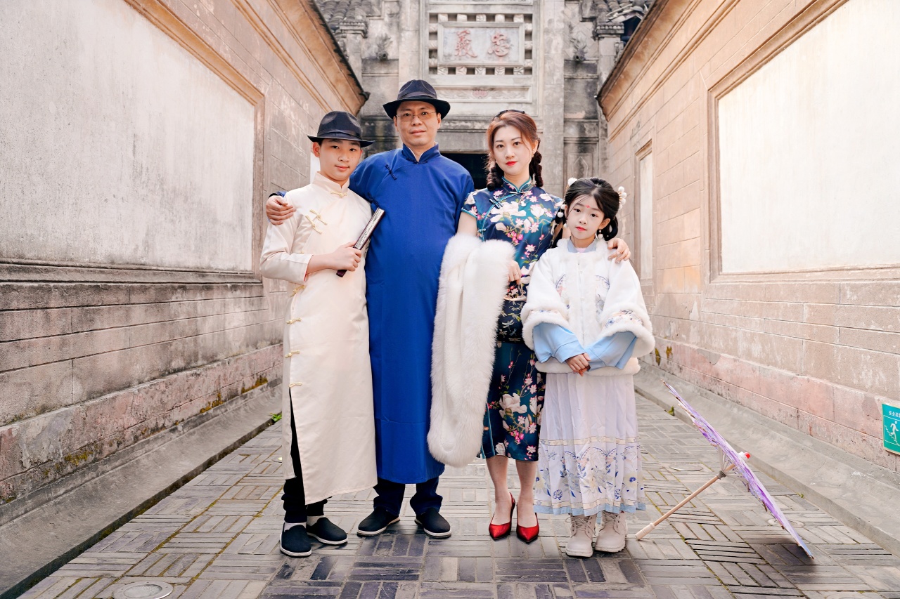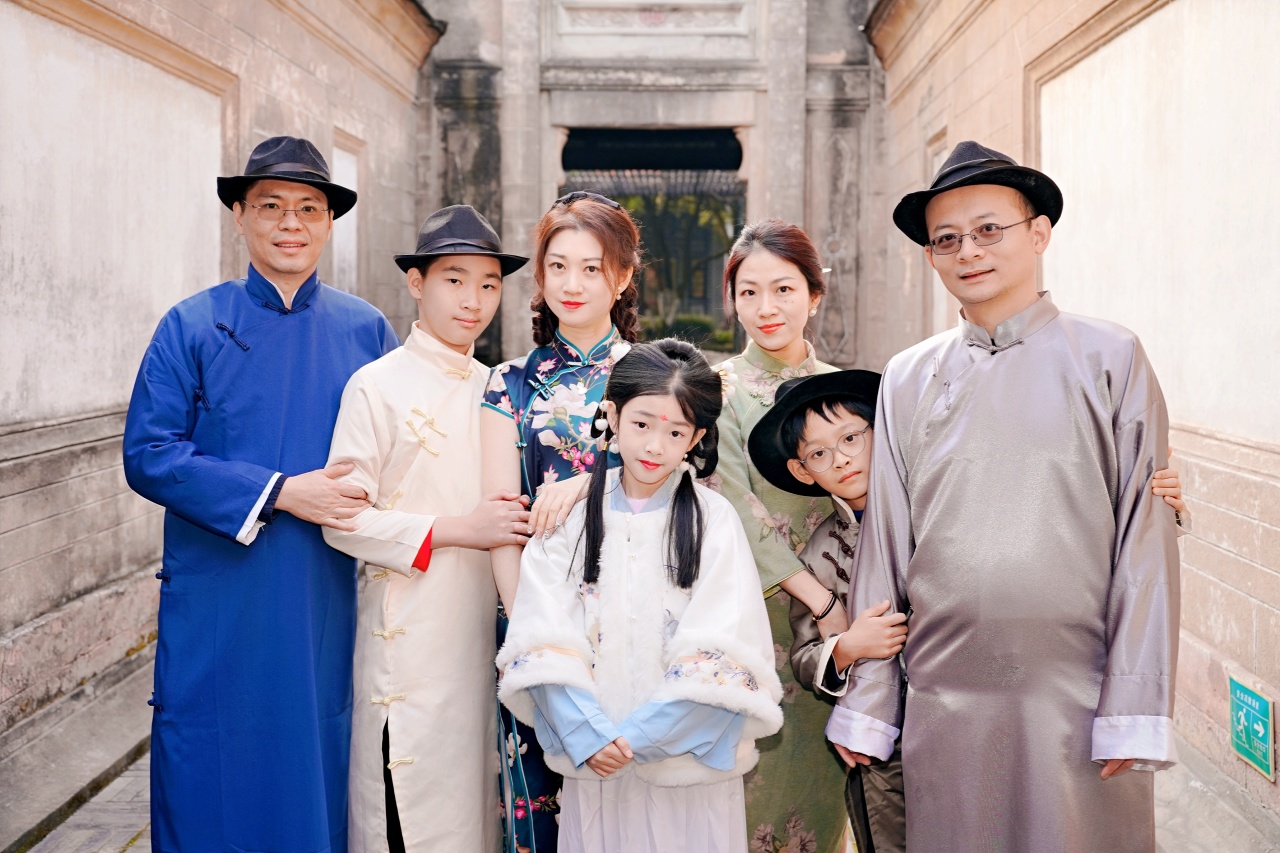 在这里,您与孩子将化身“民国亲子学堂”里的先生与学童,在百年公馆的实景中,共同换上精致的亲子旗袍、长衫。这是一场温馨的亲子协作,当您为孩子细心盘上盘扣,孩子为您端正戴上怀表时,不仅能收获亲子互动的欢笑,更能在民国风情的浸润中,为孩子种下历史美学的种子