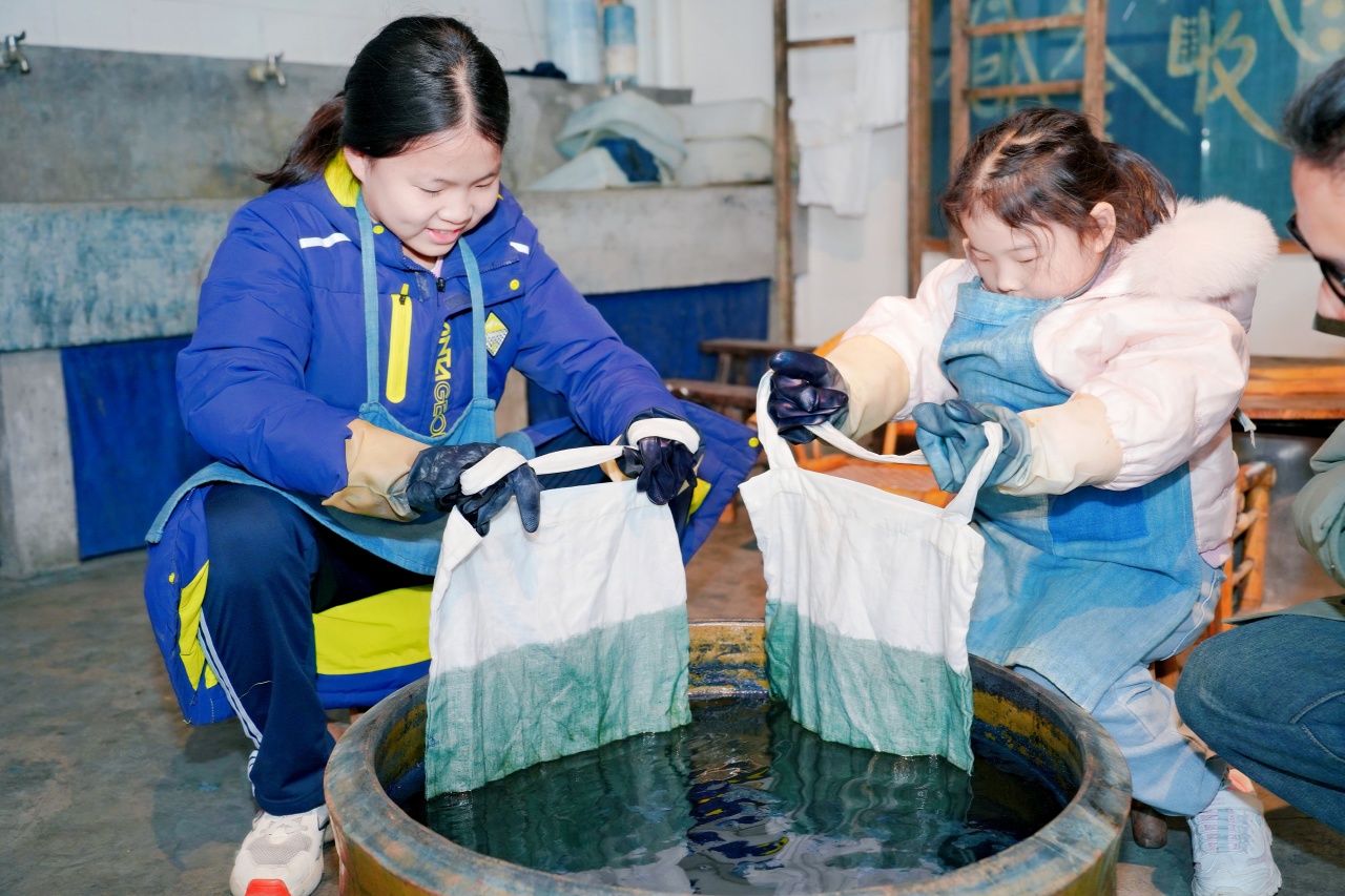 在安仁古镇的“名门”——【青红染】,你们将成为“小小染布匠”,在百年庄园的沉淀中,亲手扎结棉布、浸入传承的靛蓝染缸。亲子共创一件属于自己的扎染艺术品,和萌娃一起体验民间艺术魅力,不仅能收获创造的喜悦,更能亲身感受传统技艺的生命力