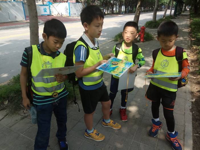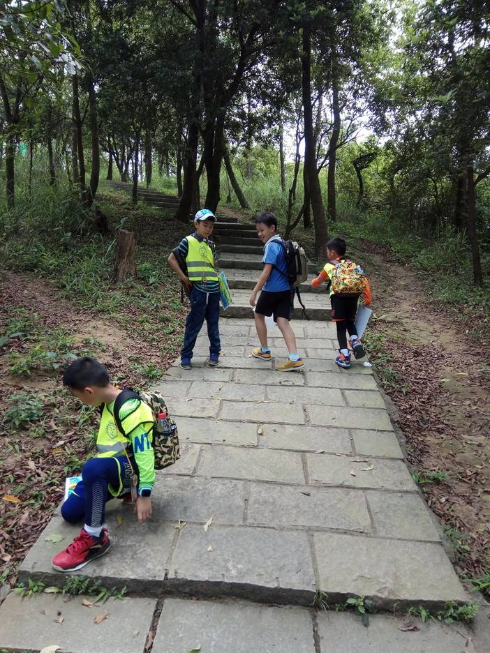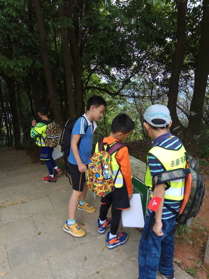 抵达SP点,为了让孩子们更充分的学习,执行小队制度,每个同学各带领一段路,这是很重要的过程,队长的选择路线就是前进路线,让孩子充满责任感,这样孩子对于熟练运用指北针和地图的欲望就会加大。