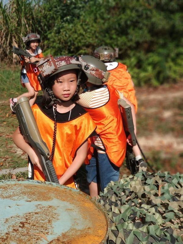 青少年CS野战,在教官的带领下,雄赳赳,气昂昂,同学们纷纷扛起枪、戴着头盔。通过剿匪和排雷战对抗游戏让同学感受快乐,体验真实战场环境下激发出来的勇气、信念、谋略和战友情。