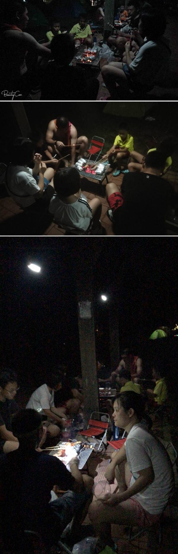 傍晚,我们准备好烧烤工具,洗菜,点火,开始海岛BBQ,大家分工合作,你插串来我烤串,很快就能吃上新鲜美味的烧烤餐。爸爸妈妈们,一边烤着串,一边喝着冰啤,吹着海风,聊着天,趣蘑菇每次都会将食材准备得足够充分,确保大家都能吃饱。