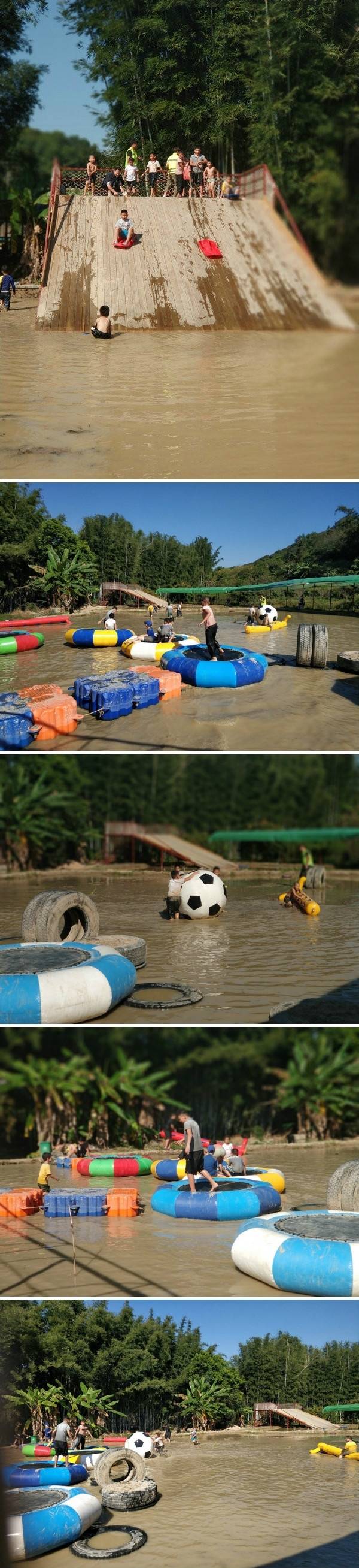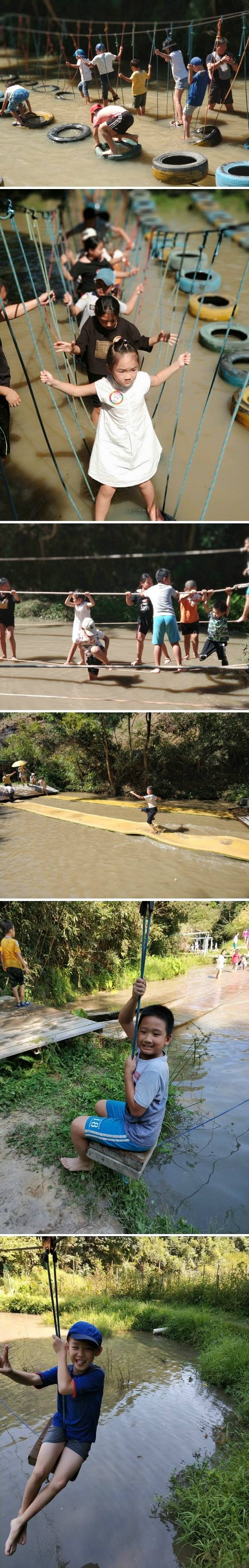 有趣的水上闯关,掉下去再上来,一次又一次,不在乎掉水,不在乎泥巴,这就是孩子们无忧无虑的童年。