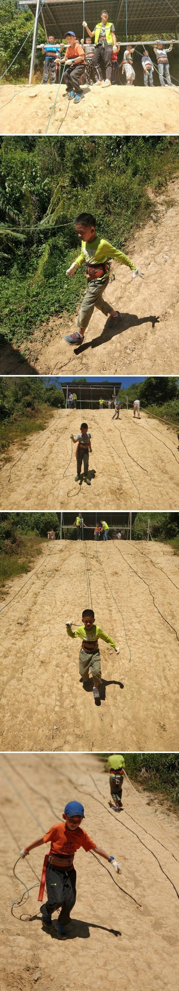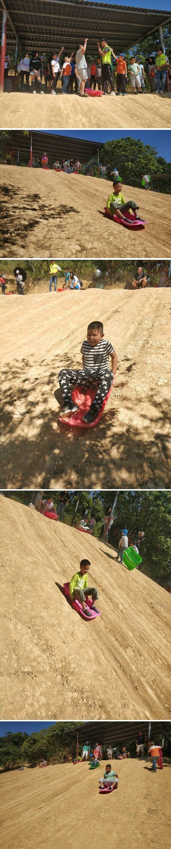 孩子们从开始的心理恐惧,经过尝试,到后来的得心应手,在土坡上像鹰一样自由飞翔。
