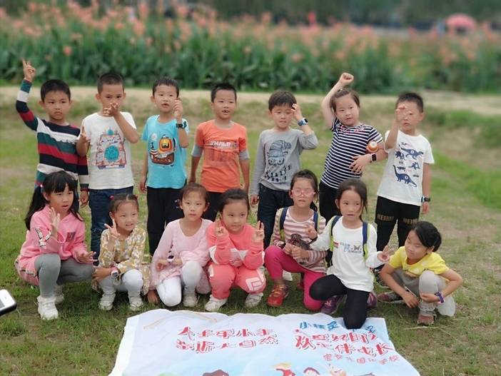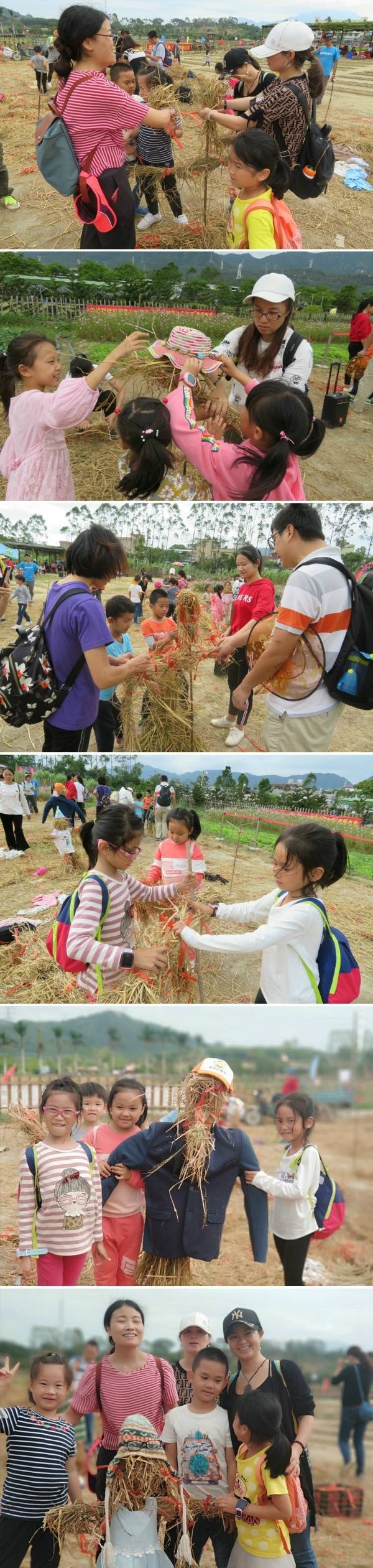 在导师的指导下,孩子们分小组进行扎稻草人任务。在爸爸妈妈的帮助和同学们的相互配合努力下,很快一个个有模有样的稻草人竖立在田野中。
