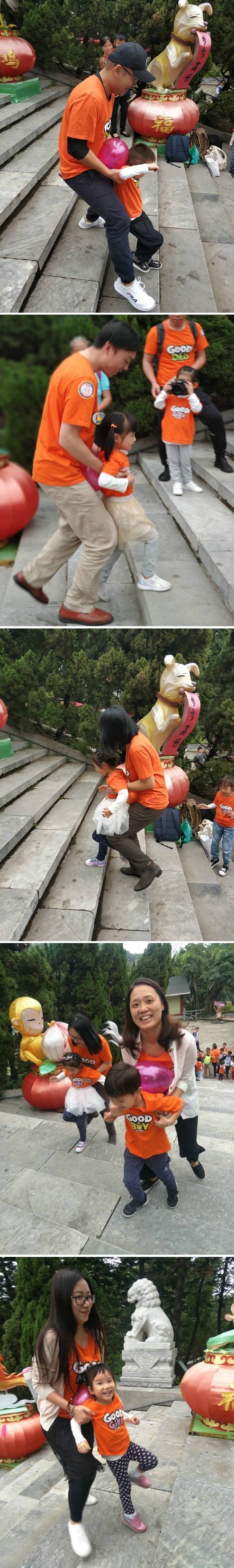 和孩子们一起进行两人三足登台阶比赛,通过互动比赛,增进家长与孩子之间距离。最终的输赢不重要,重要的是和孩子们一起并肩合作。