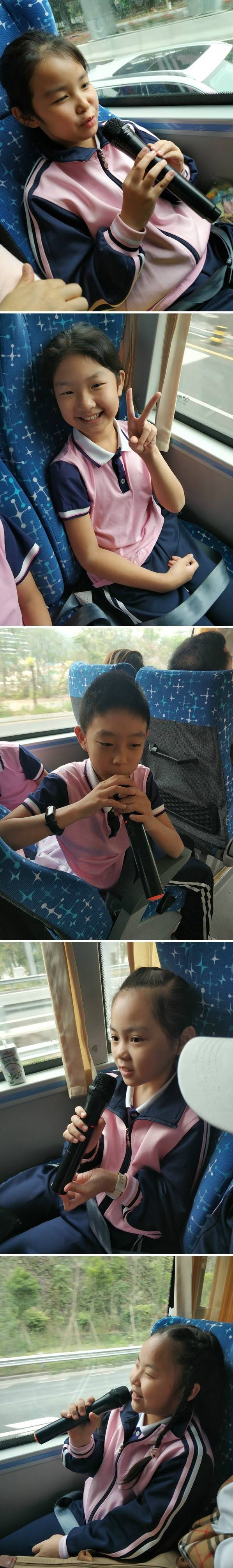 早上,趣蘑菇工作人员和大巴车,到达学校,接上孩子们,在亲子导师的带领下,大家在车上一起欢歌笑语前往大鹏,开始今天的欢乐秋游活动。