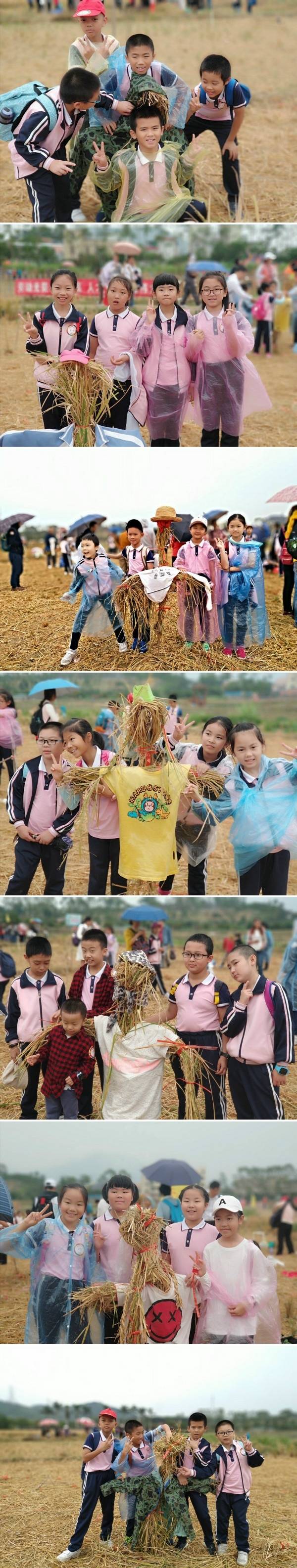 在导师的指导下,孩子们分小组进行扎稻草人任务。在爸爸妈妈的帮助和同学们的相互配合努力下,很快一个个有模有样的稻草人竖立在田野中。