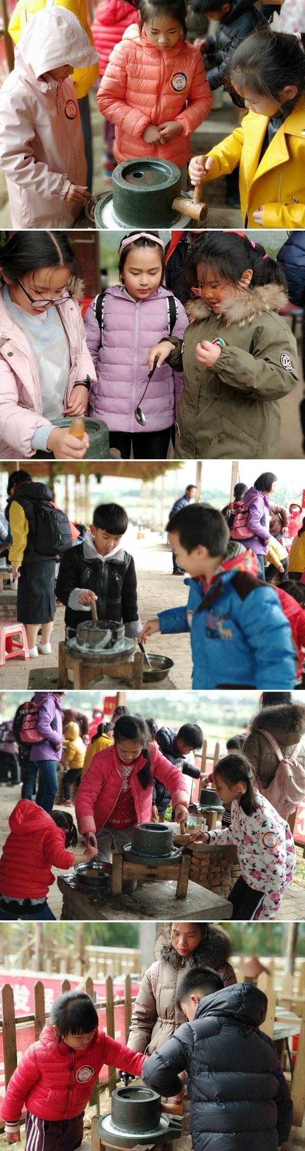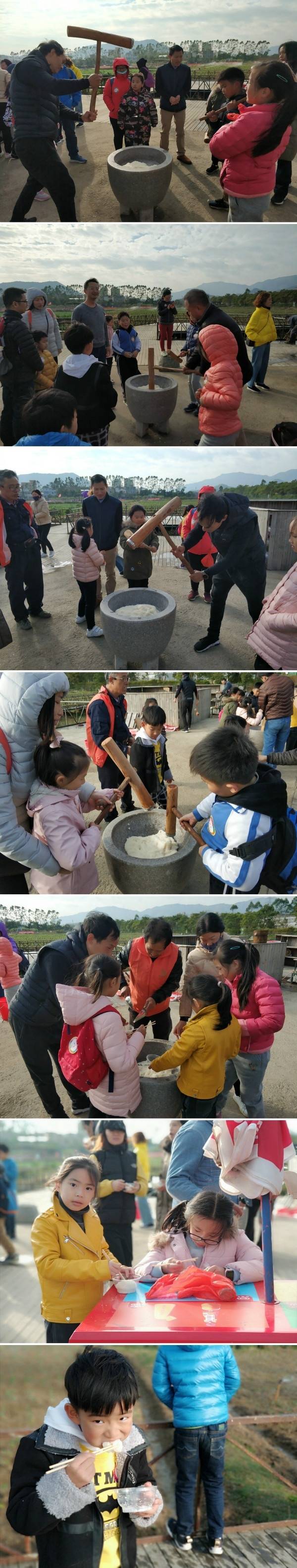 打年糕是门学问,也是一门技术,不到火候难成年糕,孩子们和爸爸妈妈一起合作挥动木锤,制作一份美味的年糕。
