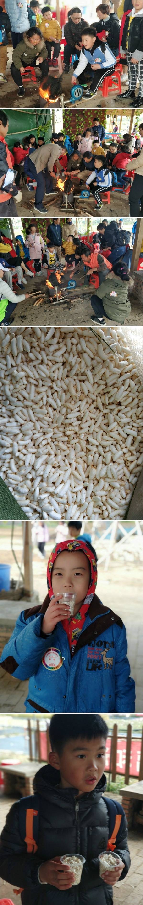 爆米花,一起将大米放到铁罐中,一边烧火,一边转到,火候已到,砰一声,香喷喷的爆米花,展现在大家面前,孩子们都抢着吃。
