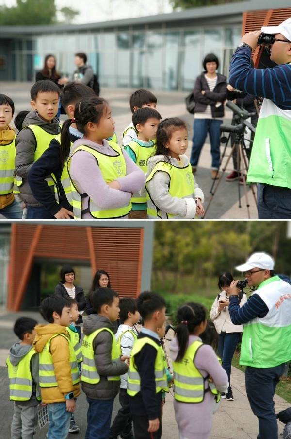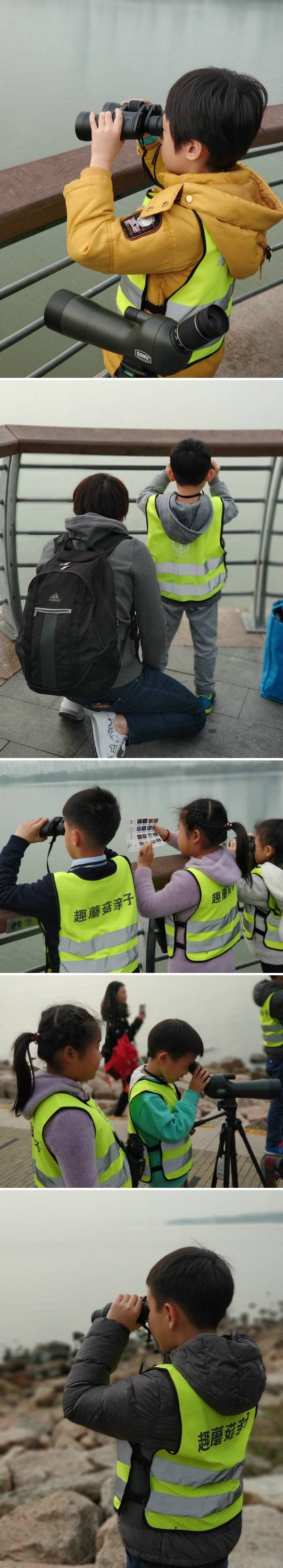 基本了解之后,给孩子们每人配一副望远镜,我们沿着深圳湾边走边讲解。
