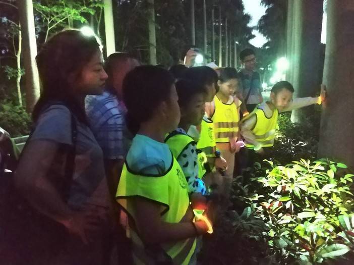 带好装备,跟着自然老师,开始寻找公园的夜精灵,海风老师给大家寻找小动物的技巧。