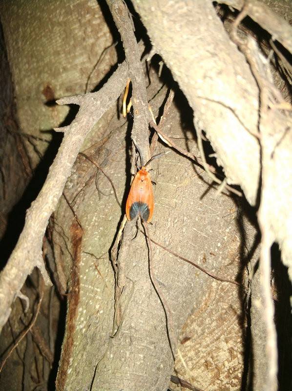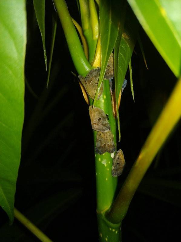 经过大家的耐心寻找,我们在树上看到比较稀有的“黑端榕蛾”,体背及腹面红色,翅端有一枚黑色的大斑。