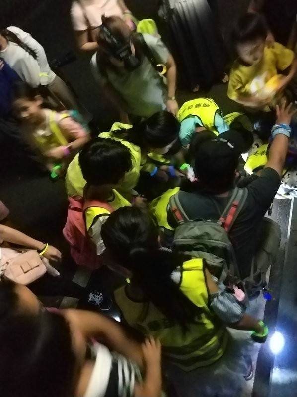 经过破冰游戏后,大家都相互熟悉了,此时,天色慢慢暗下来了,自然老师给大家讲解手电筒的使用方法。