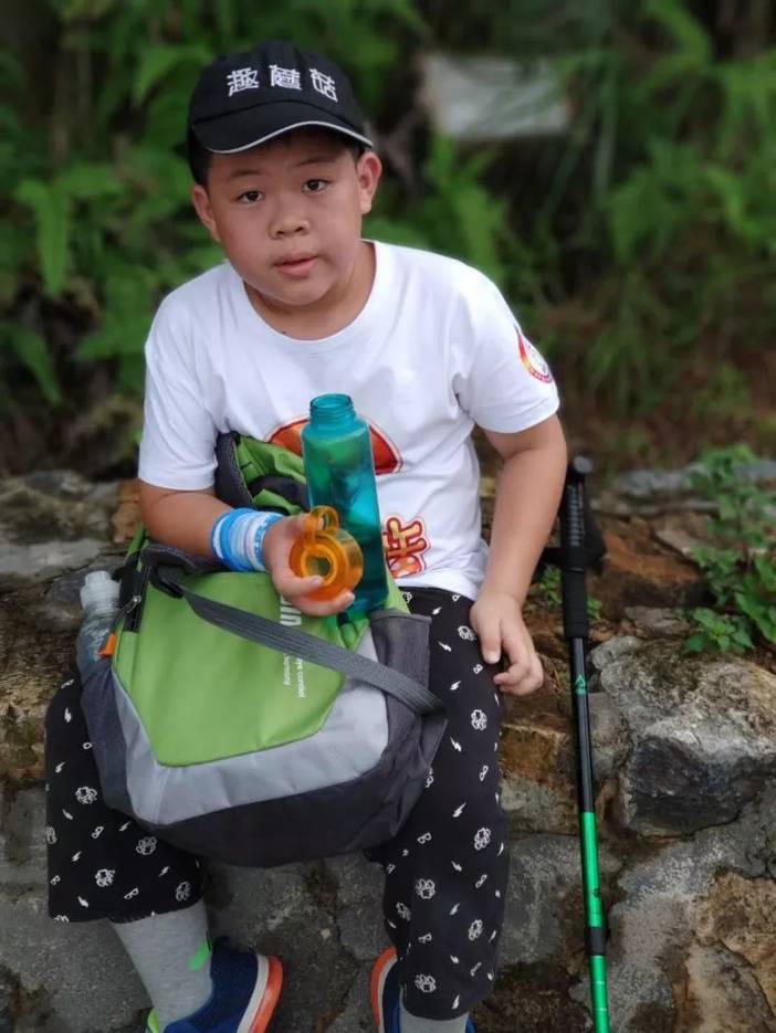 走到海拔300米的时候,这时候该让孩子们摄取一些食物和水分了。