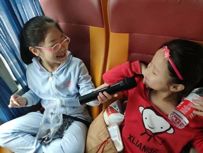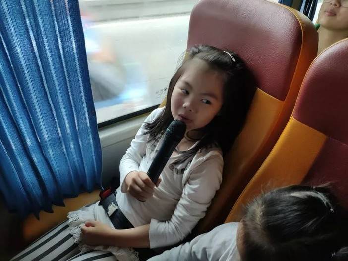 早上,趣蘑菇工作人员和大巴车,到达学校,接上孩子和家长们,在亲子导师的带领下,大家在车上一起欢歌笑语前往大鹏,开始今天的欢乐春游活动。