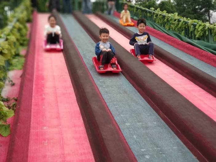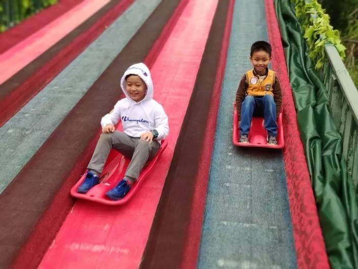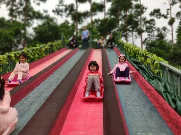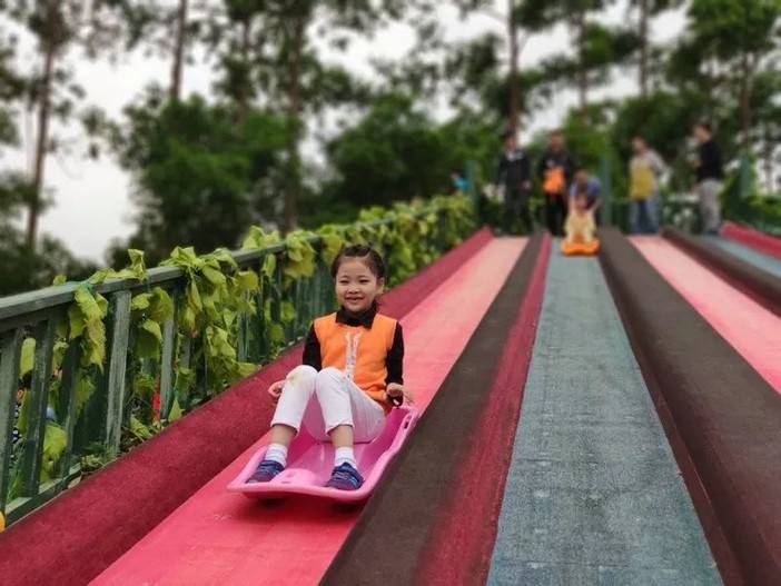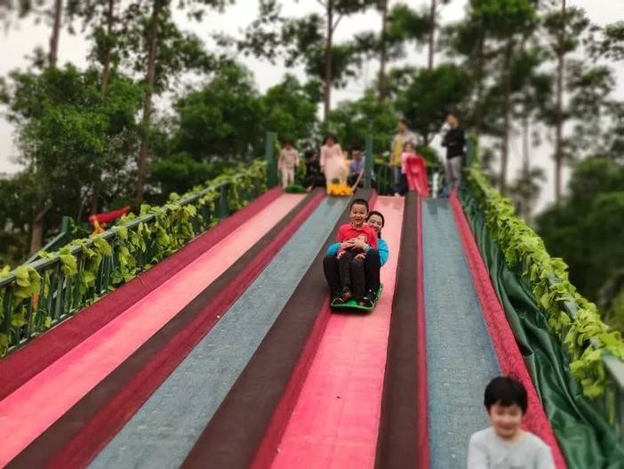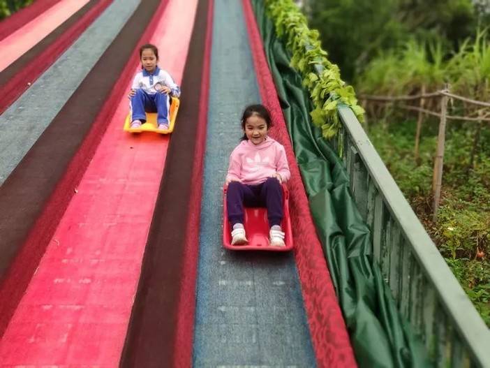 彩虹滑梯,坐在滑板上,一屁股溜下来,好玩、刺激,孩子们玩得都不愿意走。