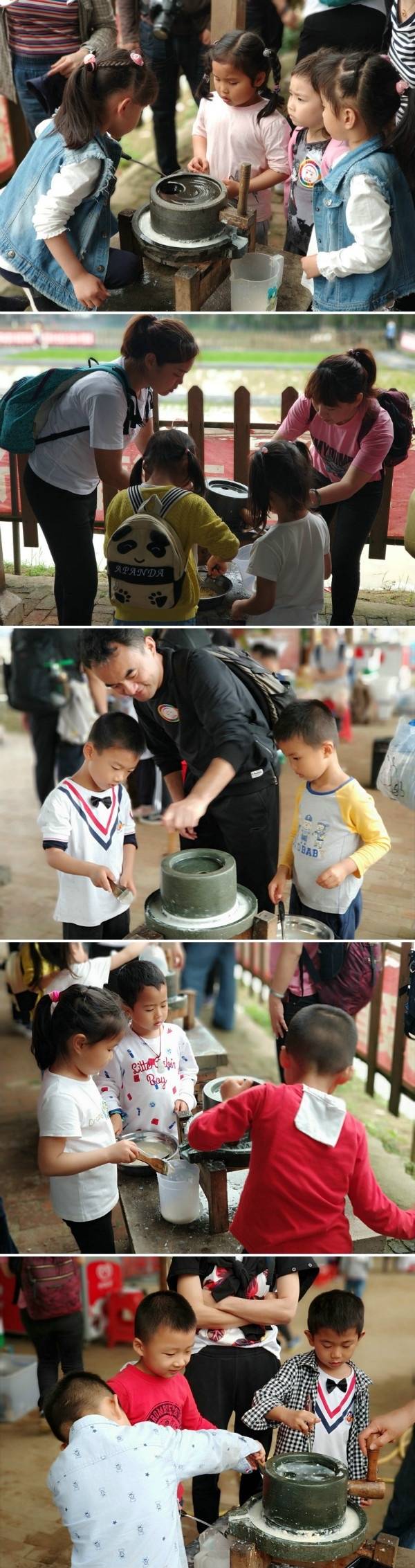 导师教孩子们用石磨磨豆浆,这是需要团队协作的活动,孩子分组一起动手把一颗颗的黄豆,磨成豆浆,然后煮熟,变成大家的饮品。
