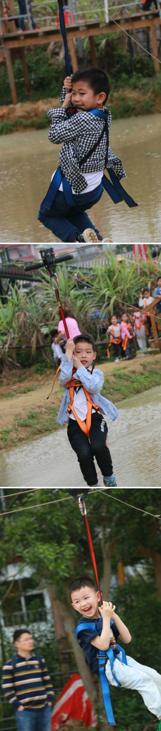 水上溜索,孩子们穿上安全带,不用害怕掉下水,一溜烟从头溜到尾,孩子们直呼,玩一次还不过瘾。