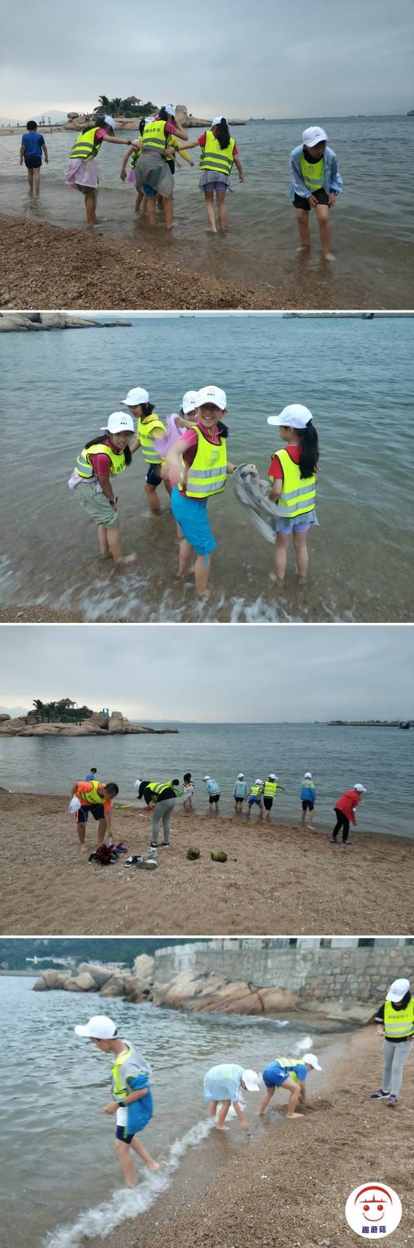 傍晚,沙滩戏水,孩子们都期待可以去沙滩玩水玩沙,导师在旁边守护着孩子们的安全
