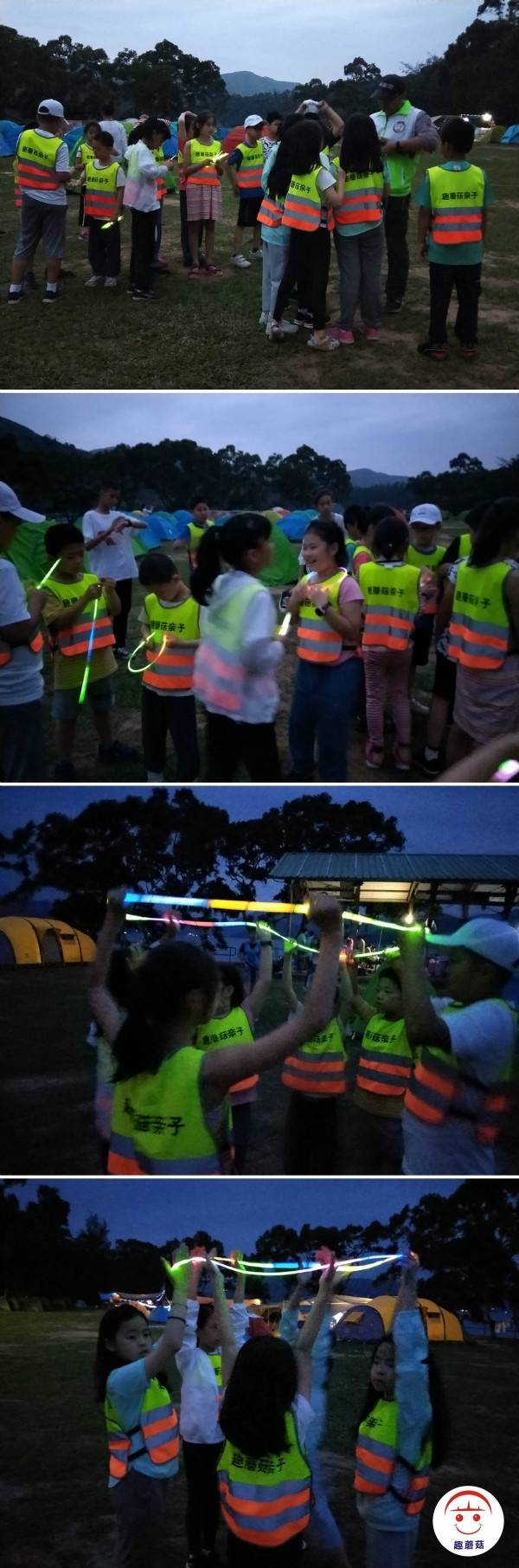 晚餐后,天色渐渐暗了下来,孩子们在营地一起游戏。