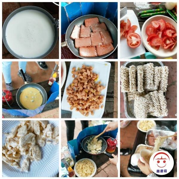 早餐,很丰盛吧,因下了点雨,温度下降,导师决定给孩子们煮热牛奶,还有午餐肉、西红柿鸡蛋面等等。