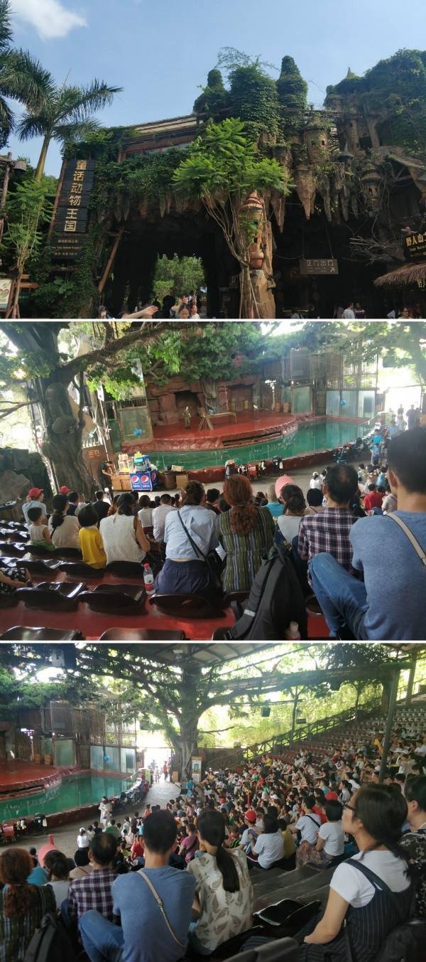 在海陆空表演馆观看动物表演,欢乐岛上的每一种动物都有着非凡的本领,它们善解人意、聪明伶俐。淘气的猴子学会骑自行车;笨重的狗熊学会跳高,它们的本领比熊大、熊二的还要高呢!狮子、老虎成群地从野山上奔跑出来,与大家只有四米的距离!在这里,海陆空动物的滑稽、可爱让大家捧腹大笑。