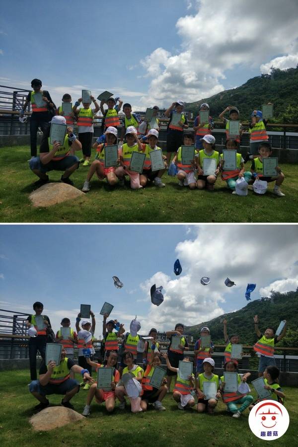 登顶伶仃峰,在徒步过程中,小组齐心协力,完成了定向寻宝任务!