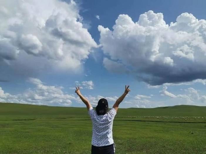 到呼伦贝尔亲近牛羊,不得不来到这里体验最美的大草原。远处的山,白云,还有那在天地间欢笑的人儿。