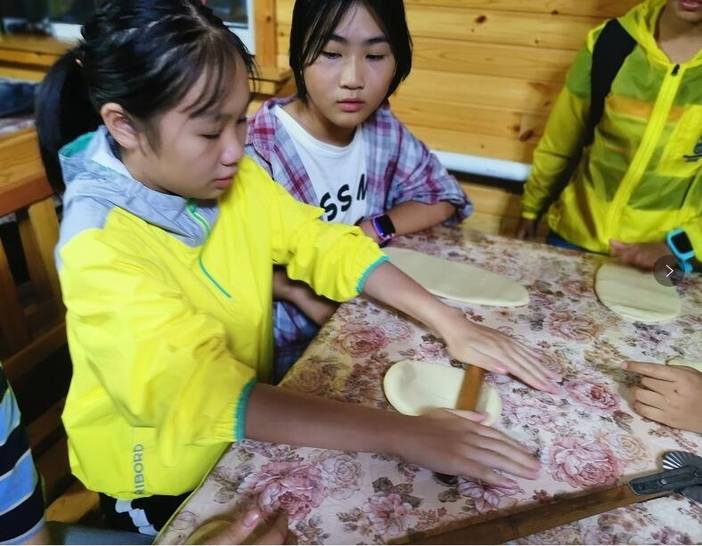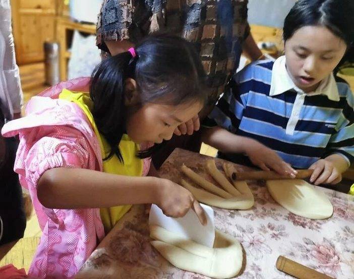 俄罗斯族手工工作坊内,孩子们学做俄罗斯传统食物列巴!有趣的制作过程,拉近亲子关系。这异国气息浓郁的小镇,孩子们晚上入住木刻楞小屋!