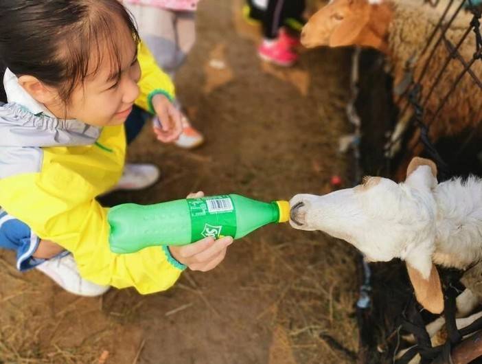 黑山头遇到小羊羔,满是好奇和惊喜!小羊小羊,草那么好吃吗?孩子们经牧羊人的允许,可以抱着小羊羔,牵牵小羊羔,和小羊羔玩一会,比如遛遛小羊。