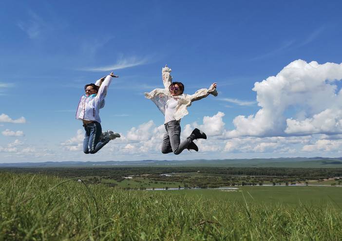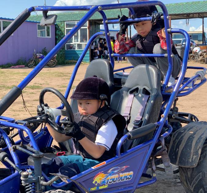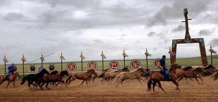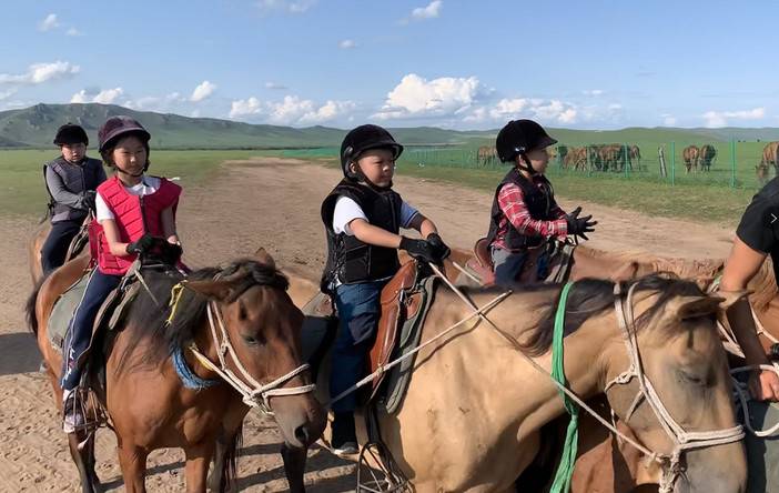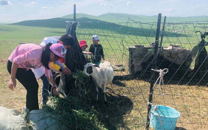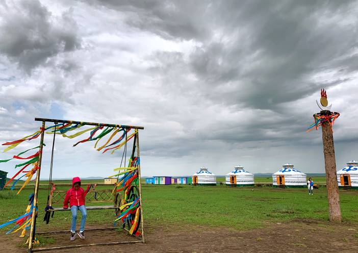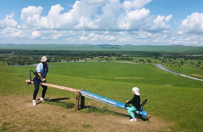 草原上的秋千和跷跷板大概是专门为孩子们准备的