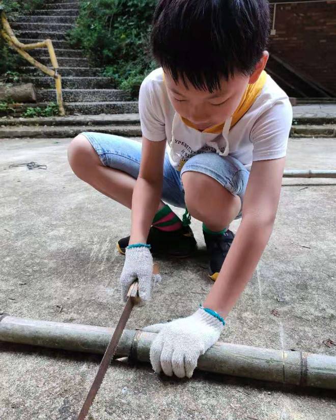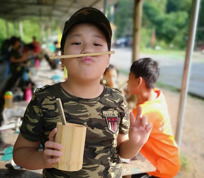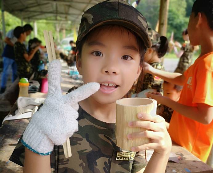裁切、打磨,一个个精美的小工艺品从孩子们手中出现了,有筷子、有竹筒...