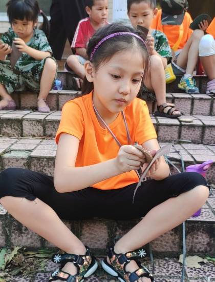 孩子们用香樟木制作自己独一无二的胸牌,加上好闻的味道,孩子们都非常喜欢和爱惜这块小牌牌的。