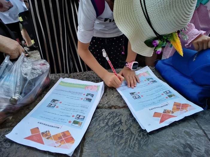 这是我们古城定向活动,孩子们到达终点,开心地写上寻觅到的答案!或许只有经过自己思考、探索过的地方,才会那么记忆深刻!