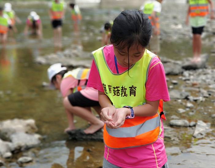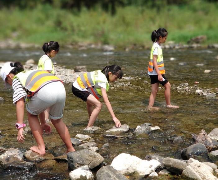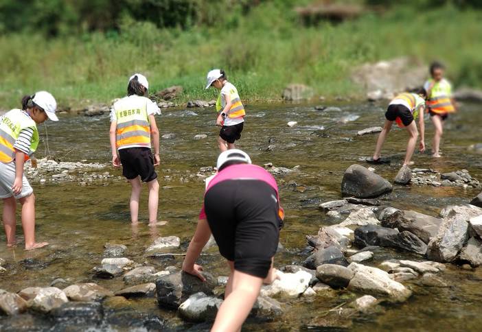 经过一条小溪,带孩子们去抓鱼摸虾,凉快凉快!