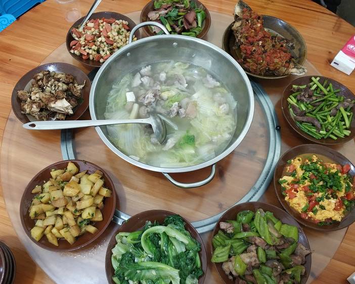 晚上我们品尝苗家特色长桌宴,感受苗家人的特色待客礼仪,高山流水敬酒。