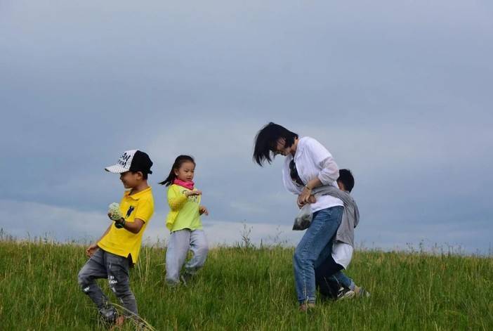 草原上奔跑玩耍,玩有趣的草原游戏,孩子们很快打成一片。家长和孩子们在草原上狂欢!