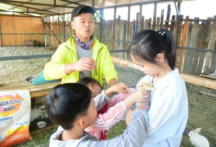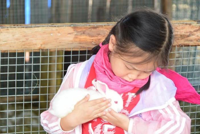 喂养圈里一圈圈的兔子,安安静静就是它的本色!孩子们小心翼翼地捧在手上,轻轻抚摸它们!