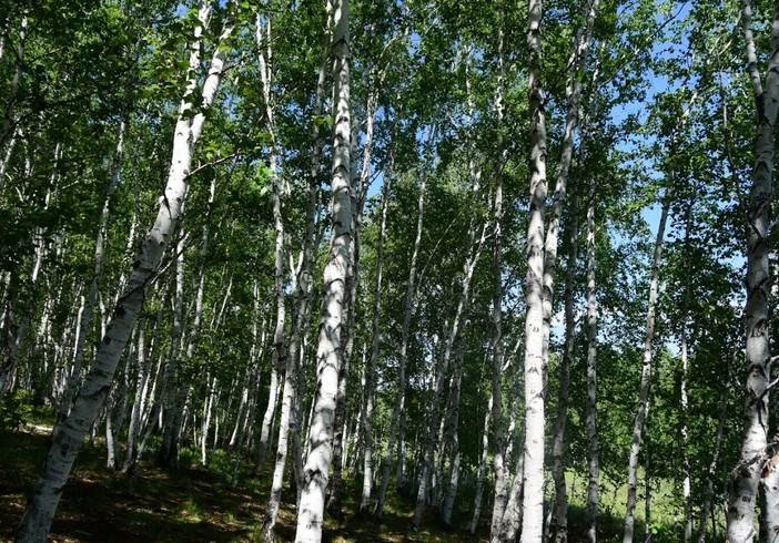 草原的尽头是森林,树干洁白的白桦林在召唤!