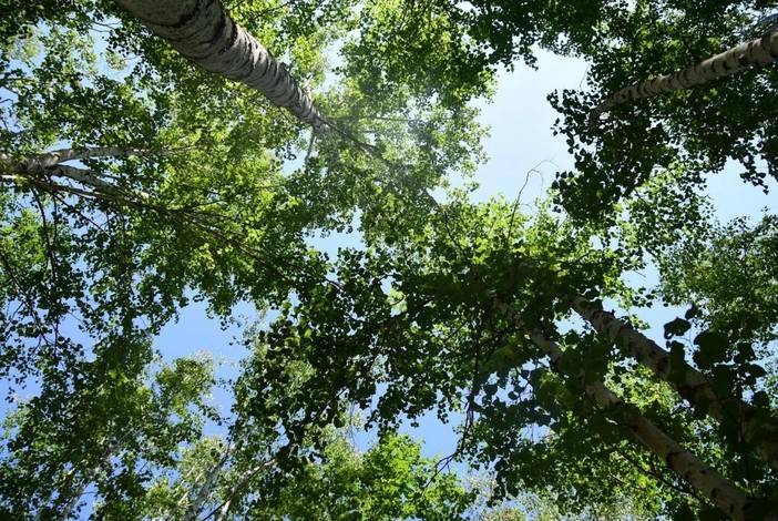 收获满满的孩子们,这时候才抬头望着高高的白桦林。白桦林为什么颤抖,因为它在听鸟叫!
