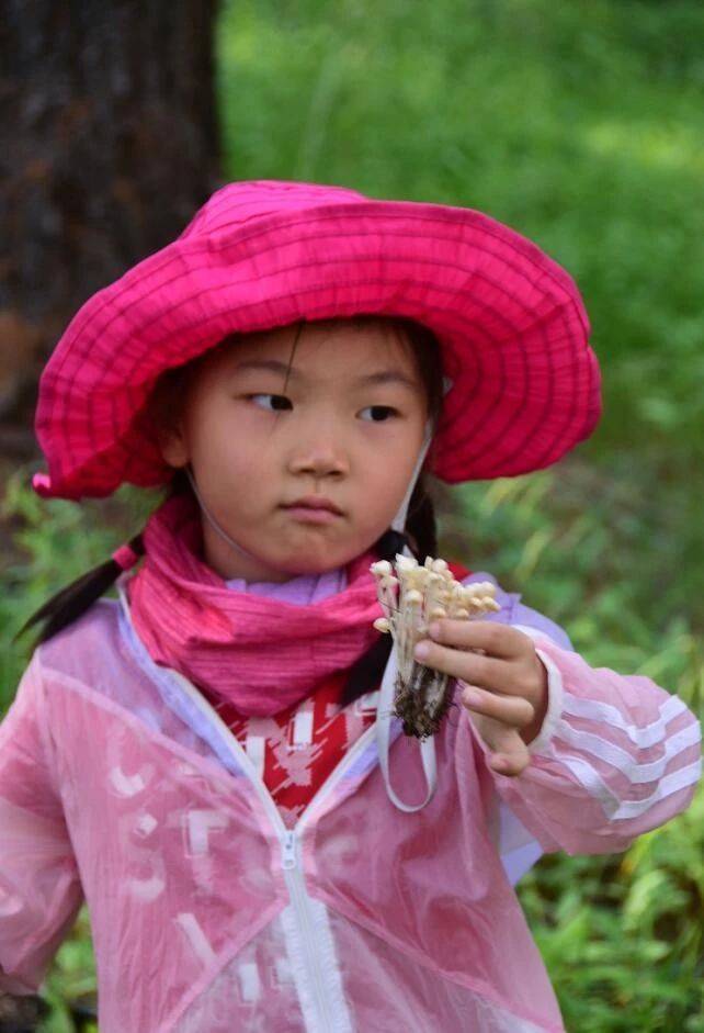孩子们听着向导的指引,分头结伴寻找,在草地落叶中,又发现一簇蘑菇,兴奋地叫起来!采蘑菇也是不容易的一件事!经过共同努力,已经采摘了一小袋子!