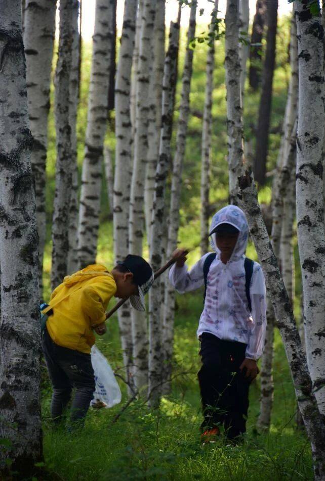 白桦林探索-采蘑菇的孩子