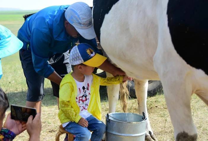 挤牛奶体验,草原上的人们自己动手,丰衣足食!平日餐桌上牛奶很常见,这么一下下由工人们挤出来的新鲜牛奶就不常见了!