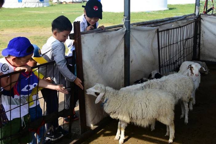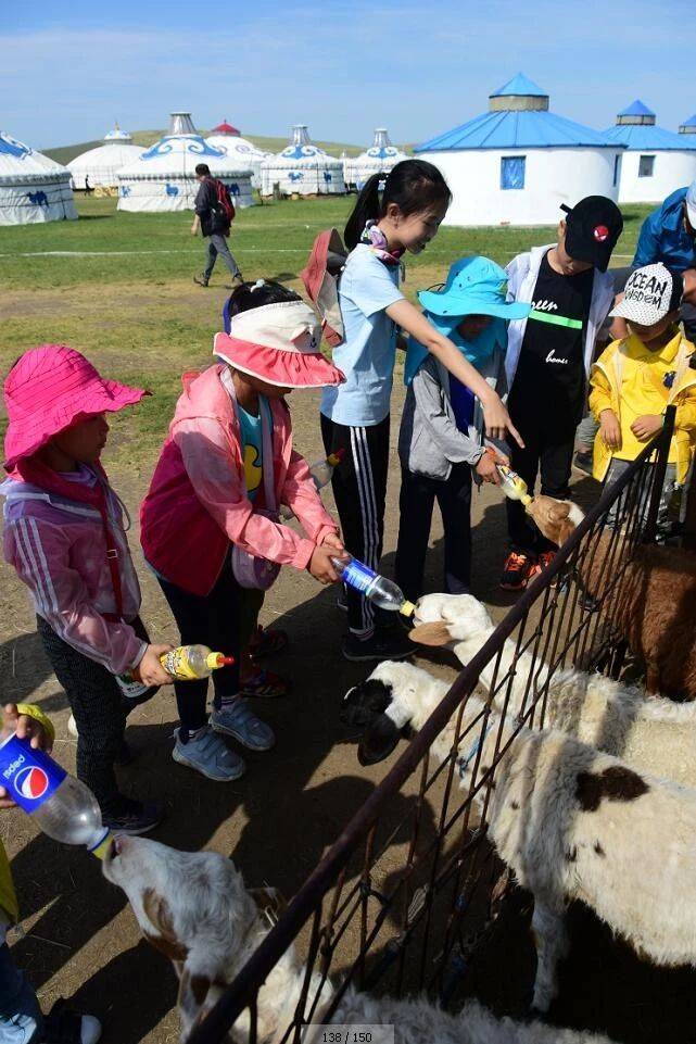 做草原娃娃,喂小羊羔!孩子们围着栅栏,伸手摸摸小羊,一点点喂!感受和小羊的亲密接触!