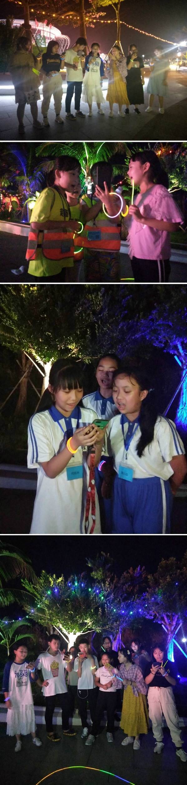 荧光晚会,晚上,大家一起歌唱,表演节目,欢乐时刻,增加队员之间友谊。