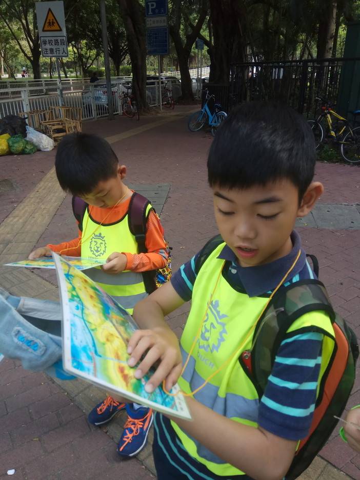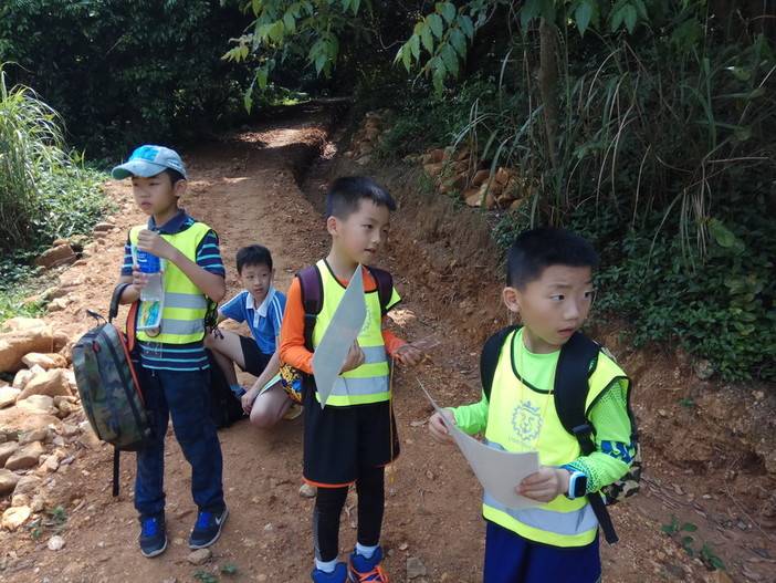 海风老师给孩子们讲解等高线地图的识别方法以及等高线地图与普通地图的区别,另外这一段包含着最陡峭的路线,海拔快速升高,对孩子们有一定的挑战。