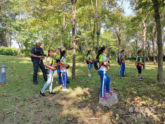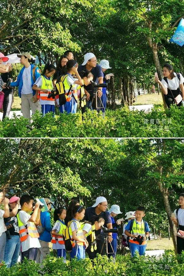 了解基本知识之后,给孩子们每人配一副望远镜,我们沿着深圳湾公园边走边讲解。