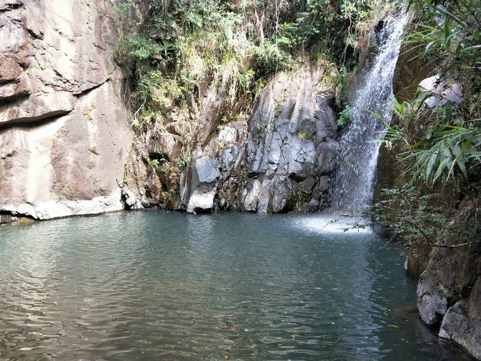 马峦山位于深圳市东部山区,有深圳最大的瀑布,谷内岩石因水流冲刷而形成各种形态,大小不等,且呈犬牙交错之状,溪水清澈见底,山谷两旁植被浓郁,藤蔓横生,野花遍地,偶尔伴有的几声鸟叫虫鸣,会使此地更显静谧。