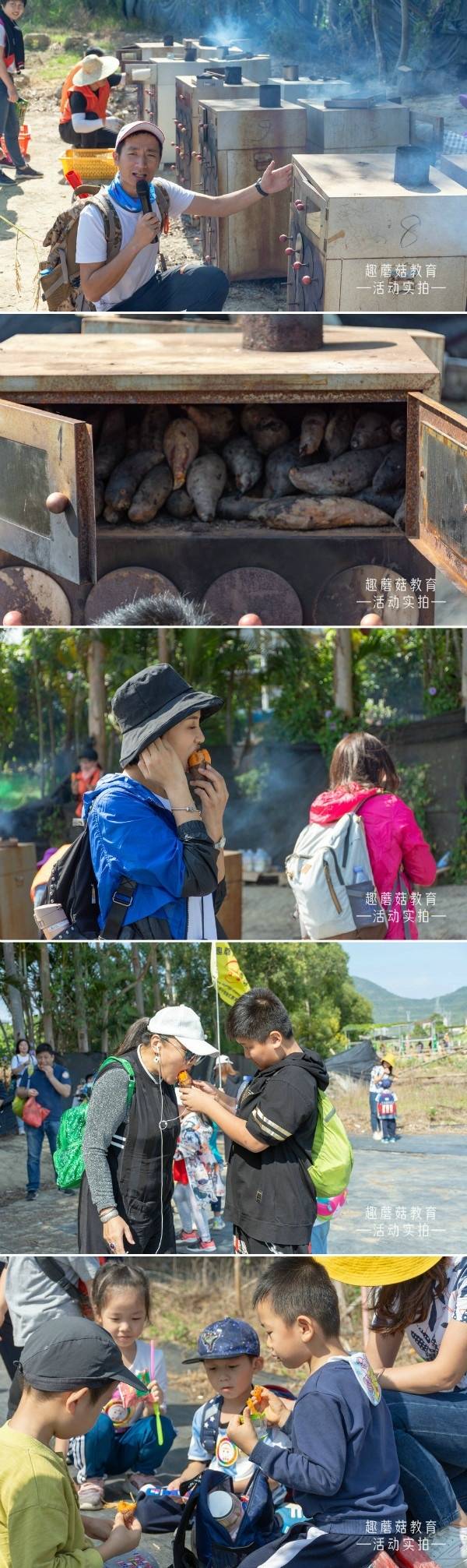 将挖好的红薯放到专用的烤箱用柴火烘烤,因需要烤的红薯太多,节约大家等待的时间,工作人员提前烤好一部分红薯,大小朋友们品尝新鲜热腾腾的烤红薯。