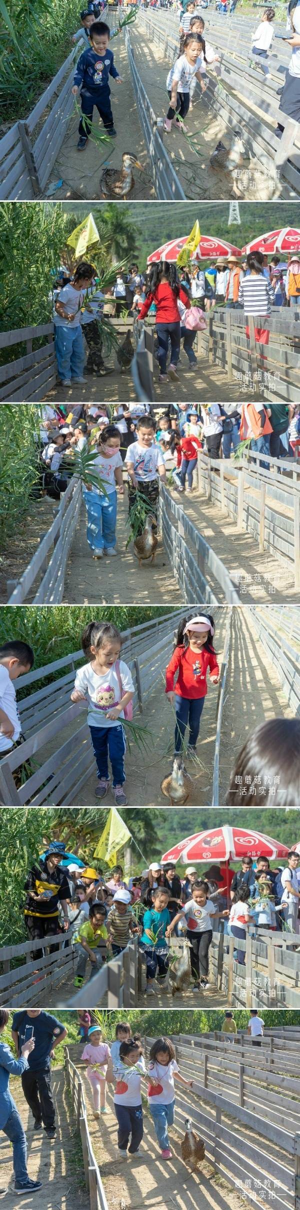 赶鸭子比赛开始咯,孩子们相互合作,看看谁最快把鸭子赶到终点。看似简单,实际体验中,孩子们乐趣多多、困难重重,鸭子不走了怎么办?鸭子往回走怎么办?